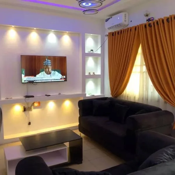J3s apartment and lounge提供花园、酒吧以及带阳台和免费WiFi的空调住宿,距离贝宁城国家博物馆有9公里。内部提供私人停车位。 所有房间均配有私人浴室、平板电视和设施齐全的厨房。 这家公寓提供桑拿房。 贝宁城机场距离住宿有4公里。