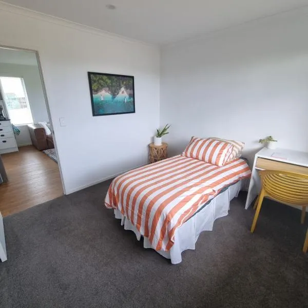 Clarks Beach Getaway坐落于Clarks Beach,距离奥克兰植物园仅有37公里,配备花园、露台和免费WiFi。这家公寓配有免费私人停车位。客人可以在周边地区体验徒步和垂钓等活动。 这家空调公寓配有2间卧室、起居室、带冰箱和咖啡机的设施齐全的厨房以及1间带淋浴设施和吹风机的浴室。这家公寓也拥有1间浴室。 这家公寓距离霍威克历史村有46公里,距离斯玛尔特山体育场有47公里。