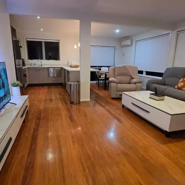 3 Bedroom Stunner in Hobsonville - WiFi - Netflix位于奥克兰,享有花园景,距离奥克兰海港大桥有21公里,距离伊甸公园体育场有22公里。这家住宿的客人可以使用阳台、免费私人停车位和免费WiFi。 这家空调度假屋配有3间卧室、起居室、带冰箱和电热水壶的设施齐全的厨房以及2间带淋浴设施和免费洗浴用品的浴室。