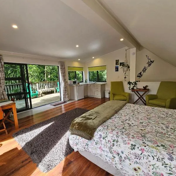 Self check-in studio with bathroom坐落于Te Miro,距离神秘河活动中心仅有29公里,享有山景,配备免费WiFi和免费私人停车位。这家住宿享有花园景,距离汉密尔顿花园有33公里,距离怀卡托体育场有38公里。 这家乡村民宿配备电视。小厨房提供冰箱、微波炉和吐司机。住宿提供淋浴设施、免费洗浴用品和吹风机。