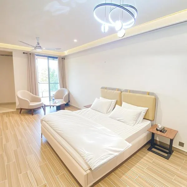 AK Hotel & Suites位于穆里。这家住宿的客人可以使用阳台、免费私人停车位和免费WiFi。 这家公寓享有花园景,提供露台,配有1间卧室、起居室、平板电视、设施齐全的厨房以及1间带浴缸的浴室。1间浴室提供免费洗浴用品。 早餐提供单点、全套英式/爱尔兰式或亚洲风味三种选择。 贝娜齐尔·布托国际机场距离住宿有87公里。