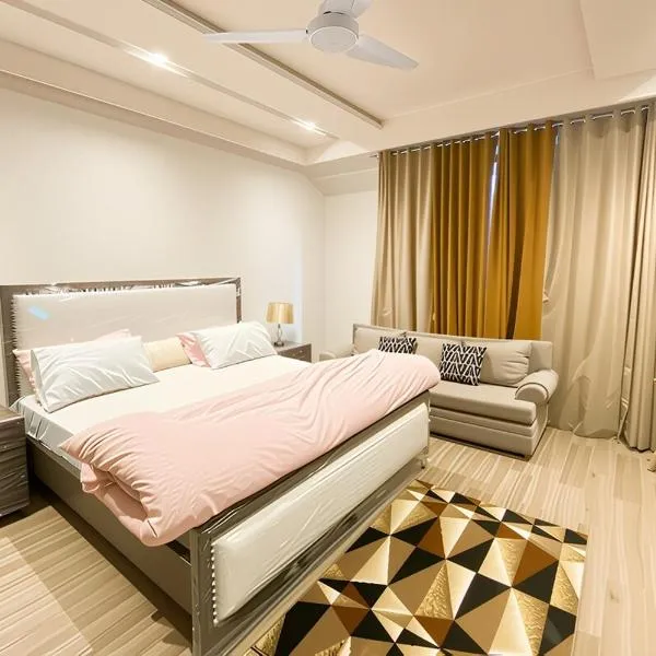Luxury One Bed Apartment in Parkridge Murree位于穆里。这家住宿的客人可以使用阳台、免费私人停车位和免费WiFi。 这家公寓配有1间卧室、设施齐全的厨房和1间浴室。这家公寓也提供1间浴室。 贝娜齐尔·布托国际机场距离住宿有86公里。