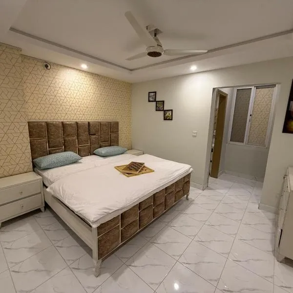 Fior Moonlight1-bedrooom apartment坐落于拉瓦尔品第,距离费萨尔清真寺有23公里,配备露台、免费WiFi、客房服务和24小时前台。这家公寓还拥有私人泳池。 这家空调公寓配有1间卧室、起居室、带微波炉和电热水壶的设施齐全的厨房以及2间带坐浴盆和淋浴设施的浴室。这家公寓还提供平板电视以及2间带免费洗浴用品的浴室。 这家公寓提供汽车租赁服务。 Fior...