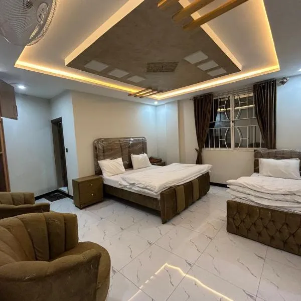 Burj A Zafar位于穆里。这家舒适型酒店提供客房服务和24小时前台。住宿配有露台。客人可以使用免费WiFi和免费私人停车位。 部分客房拥有带冰箱、烤箱和微波炉的厨房。 这家酒店拥有一间供应亚洲风味美食的餐厅,可应要求提供清真食品。 贝娜齐尔·布托国际机场距离住宿有87公里。