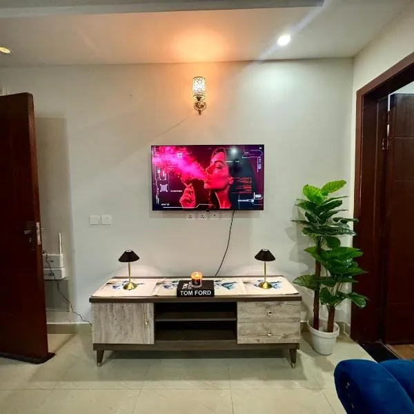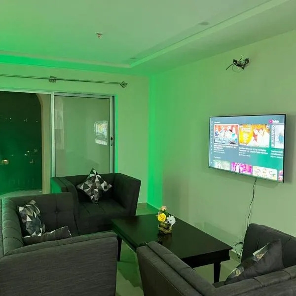 Sky Park Tower Premium Apartments Gulberg Greens Islamabad位于伊斯兰堡,享有市景,配有免费WiFi和免费私人停车位,距离费萨尔清真寺有20公里。 每间房间都配备阳台、带冰箱的设施齐全的厨房、带沙发床休息区、平板电视、洗衣机以及带坐浴盆和免费洗浴用品的私人浴室。住宿还提供微波炉、迷你吧、炉灶和电热水壶。 这家公寓提供欧陆式或清真早餐。