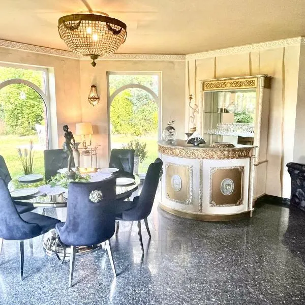 Willa Wanda - duży ogród z hot-tube i sauna坐落于Sztum,距离埃尔布隆格运河仅有45公里,提供网球场、烧烤设施和24小时前台。这家别墅配备免费私人停车位、共用厨房和免费WiFi。 这家别墅提供露台,享有花园景,拥有4间卧室、起居室、平板电视、带冰箱和洗碗机的设施齐全的厨房以及2间带淋浴设施的浴室。2间浴室配有浴缸,也配有吹风机,提供毛巾和床上用品。