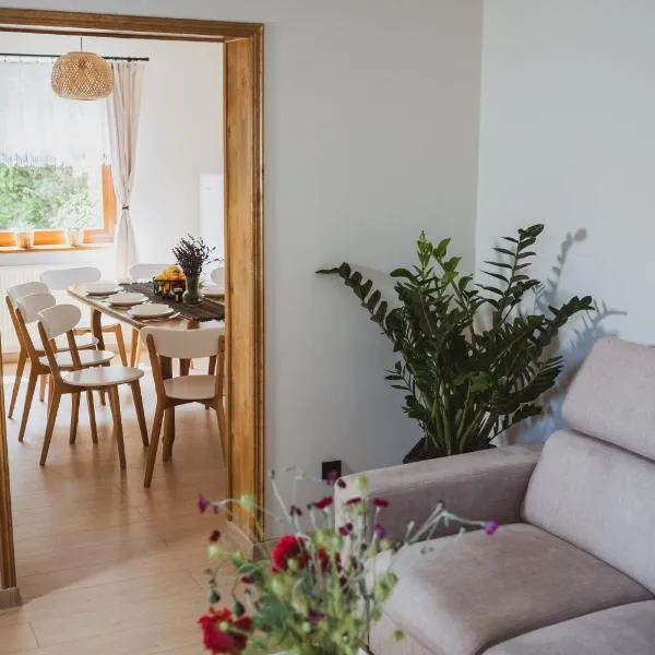 Energylandia Zator noclegi apartament pokoje do wynajęcia坐落于Polanka Wielka,提供带阳台和免费WiFi的自助式住宿。这家住宿距离奥斯威辛有16公里,配备露台和免费私人停车位。 这家空调公寓配有2间卧室、起居室、带冰箱和电热水壶的设施齐全的厨房以及1间带淋浴设施和吹风机的浴室。这家公寓也拥有休息区和1间浴室。
