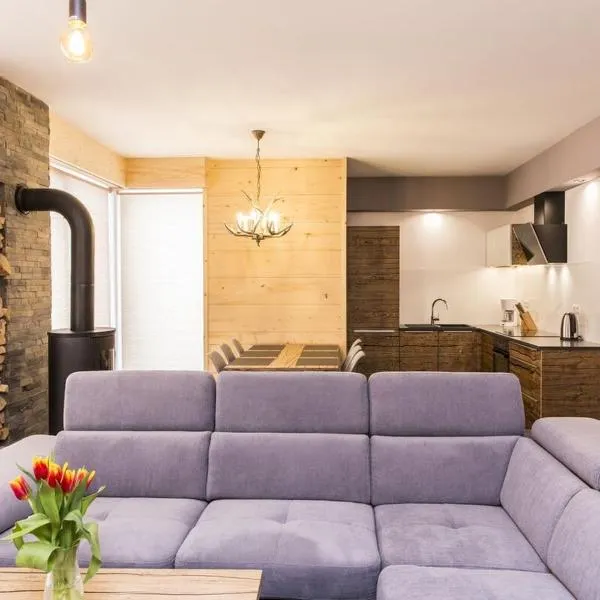 Apartamenty - Dom w Górach坐落于克鲁斯兹考采,距离涅茲卡城堡仅有15公里,提供花园、共用休息室和共用厨房。这家住宿的客人可以使用阳台、乒乓球桌、免费私人停车位和免费WiFi。 这家公寓提供露台,享有山景,拥有5间卧室、起居室、平板电视、带冰箱和洗碗机的设施齐全的厨房以及2间带淋浴设施的浴室。这家公寓还配备休息区以及2间带浴缸的浴室。
