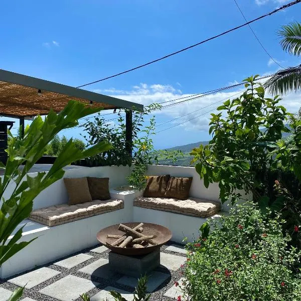 Appartement vue panoramique +spa位于圣路易斯,距离Saga du Rhum有24公里。客人可以使用热水浴池。这家住宿距离波旁高尔夫俱乐部有19公里,提供花园和免费私人停车位。 这家公寓提供露台,享有山景,配有2间卧室、起居室、平板电视、带冰箱和烤箱的设施齐全的厨房以及1间带淋浴设施的浴室。这家公寓还配备休息区、洗衣机以及1间带热水浴池的浴室。