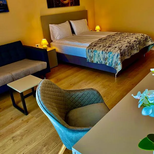 Evo Residence Oasului位于克卢日-纳波卡,距离特兰西瓦尼亚民族志博物馆有3.6公里,距离川西凡尼亚博览会有3.9公里,提供空调,可通往花园。内部提供私人停车位。 客房配有平板电视以及带淋浴设施和吹风机的私人浴室。厨房配有冰箱、洗碗机和烤箱。住宿提供微波炉、炉灶和咖啡机。 这家公寓距离班菲宫有4.3公里,距离克卢日体育场有4.6公里。克鲁日国际机场距离住宿有6公里。