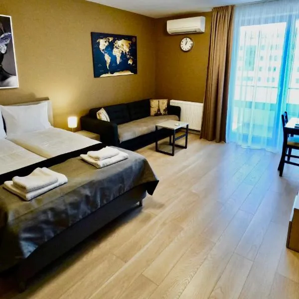 Apartament zona aeroport坐落于Sînnicoară,距离川西凡尼亚博览会仅有10公里,享有市景,配备免费WiFi和免费私人停车位。入住这家公寓的客人可以使用阳台。 这家空调公寓配有1间卧室、起居室、带冰箱和咖啡机的设施齐全的厨房以及1间带淋浴设施和免费洗浴用品的浴室。这家公寓还提供平板电视以及1间带吹风机的浴室。 这家公寓提供汽车租赁服务。