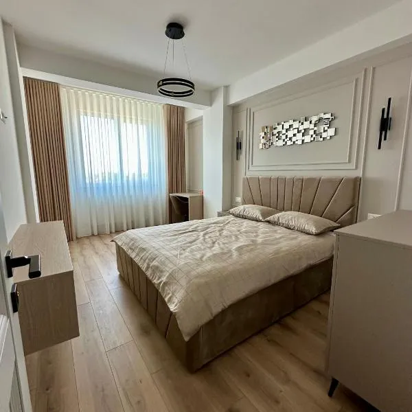 Criss Apartament坐落于苏恰瓦,配有客房和阳台。这家公寓距离Voronet修道院有45公里,距离埃斯卡拉达冒险公园有40公里。 这家2卧室公寓提供起居室、带有线频道的平板电视、设施齐全的厨房以及1间带浴缸的浴室。这家公寓也配备1间浴室。 这家公寓距离胡摩尔修道院有44公里。苏恰瓦机场距离住宿有9公里。