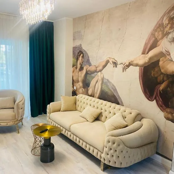 Copou Residence享有花园景,配备酒吧和阳台,距离Metropolitan Cathedral Iasi约有6.3公里。住宿提供内部餐厅、免费私人停车位和免费WiFi。 这家公寓配有2间卧室、1间浴室、床上用品、毛巾、带有线频道的平板电视、设施齐全的厨房以及市景露台。这家空调公寓还提供洗衣机以及1间带淋浴设施和浴缸的浴室。 这家公寓提供自行车租赁服务和汽车租赁服务。