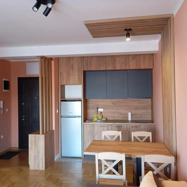 Royal apartmani Vrnjačka Banja位于Vrnjci,享有市景,配有免费WiFi和免费私人停车位,距离Bridge of Love有7分钟步行路程。 每间房间都配备露台、带冰箱的设施齐全的厨房、带沙发床休息区、平板电视以及带淋浴设施和免费洗浴用品的私人浴室。所有房间均提供山景阳台。 这家公寓为客人提供水上公园。