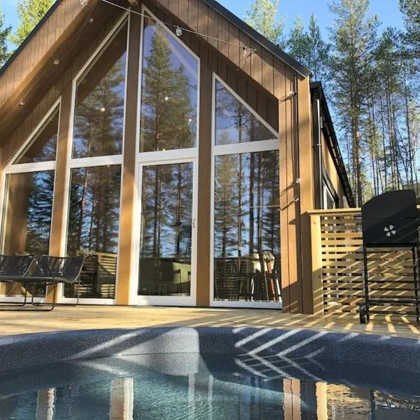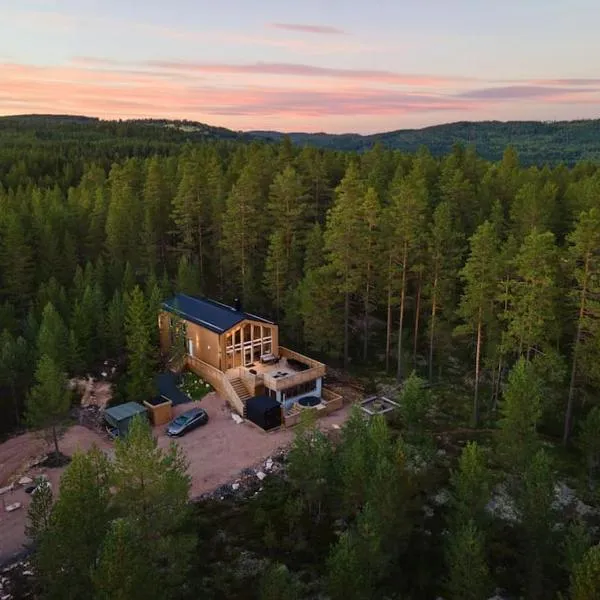 Tretoppen - Ny moderne hytte, Unike Finnskogen坐落于图什比,配备空调客房、露台和免费WiFi。这家自助式度假屋拥有私人泳池、花园和免费私人停车位。 这家度假屋提供2间卧室、带冰箱和洗碗机的厨房、平板电视、休息区以及1间带热水浴池的浴室。这家度假屋也配备1间浴室。 托斯比机场距离住宿有28公里。