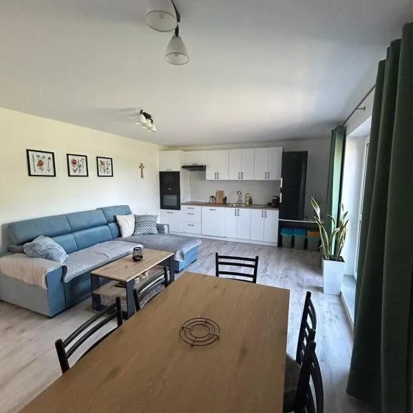 Apartament na Dziole坐落于小波兰省的Lipnica Wielka,拥有阳台。这家住宿距离古巴罗卡山有42公里,配备花园和免费私人停车位。 这家公寓享有花园景,配备露台,配有2间卧室、起居室、卫星频道平板电视、设施齐全的厨房以及2间带坐浴盆和淋浴设施的浴室。这家公寓还提供休息区、洗衣机以及2间带吹风机的浴室。 这家公寓距离奥拉瓦城堡有45公里,距离扎科帕内火车站有50公里。