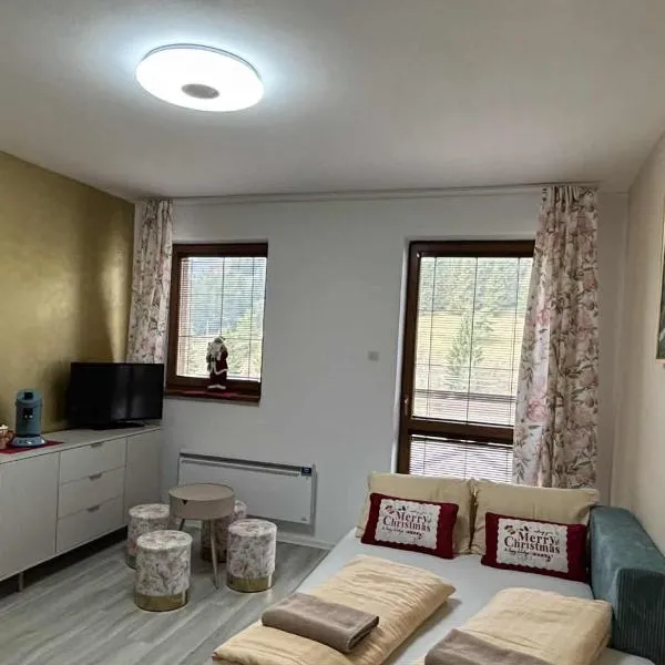 Apartman pri vleku位于塔加特,提供带免费WiFi的花园景客房,配备免费自行车、花园和餐厅。这家公寓配有免费私人停车位。客人可以在周边地区体验滑雪和骑行等活动。 这家公寓可通往阳台,配有1间卧室。这家公寓提供山景露台,也拥有有线频道平板电视、1间带淋浴设施和吹风机的浴室以及带冰箱、微波炉和吐司机的设施齐全的小厨房。 这家公寓的客人可以享用自助或欧陆式早餐。 Apartman pri...