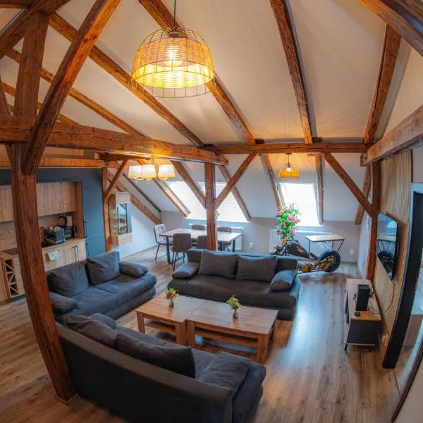 Privát na Sihoti 1位于特伦钦,距离皮斯塔尼健康水疗仅有50公里,享有市景,提供免费WiFi和免费私人停车位。这家住宿享有池景和花园景,距离Cachtice Castle有40公里。 这家空调公寓配有2间卧室、起居室、带冰箱和咖啡机的设施齐全的厨房以及1间带淋浴设施和免费洗浴用品的浴室。这家公寓还配备平板电视以及1间带吹风机的浴室。 这家公寓提供阳光露台。
