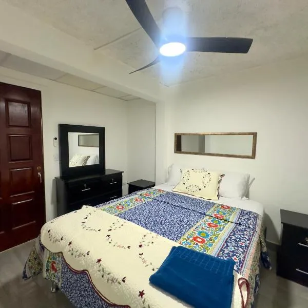 Apartamento completo Ideal para descansar en familia en San Salvador坐落于圣萨尔瓦多,提供花园,距离Bicentenario Park有10公里。这家公寓配备免费私人停车位、24小时前台和免费WiFi。 这家空调公寓配有1间卧室、起居室、带冰箱和咖啡机的设施齐全的厨房以及1间带坐浴盆和浴缸的浴室。这家公寓也配备1间浴室。