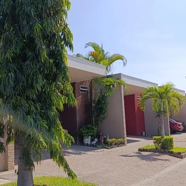 Casa en residencial Metrópoli San Gabriel, Nejapa San Salvador坐落于Nejapa,配备空调客房、庭院和免费WiFi,距离Bicentenario Park有17公里。这家度假屋还拥有私人泳池。 这家度假屋配有2间卧室、2间浴室、床上用品、毛巾、平板电视、用餐区、设施齐全的厨房以及花园景露台。这家度假屋也拥有休息区和2间浴室。