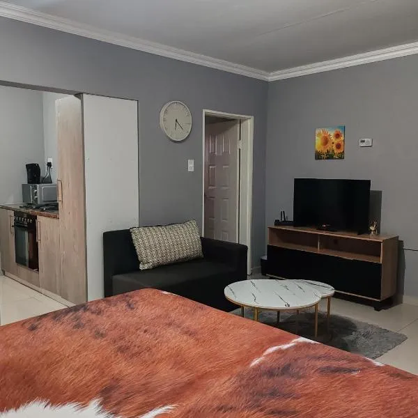 Self Catering 2 Bedroom Apartment坐落于Matsapha,提供露台。住宿配备的免费WiFi,内部提供私人停车位。 这家空调2卧室公寓提供1间浴室,配备淋浴设施、浴缸和吹风机。这家公寓也配备休息区、1间浴室以及带冰箱、烤箱和微波炉的设施齐全的厨房。 国王姆斯瓦蒂三世国际机场距离住宿有54公里。