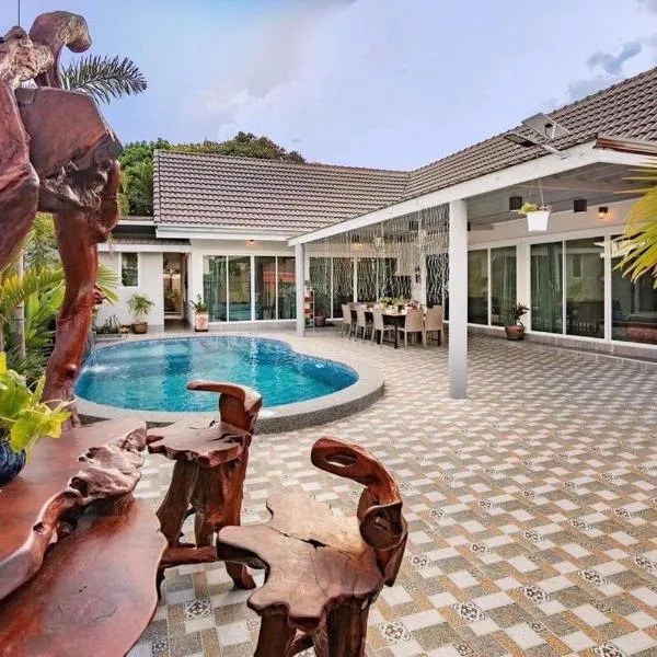 Madame pool villa位于邦萨雷,提供带免费WiFi的池景客房,配有户外游泳池。这家别墅还拥有私人泳池。 这家空调别墅配有4间卧室、起居室、带冰箱和电热水壶的设施齐全的厨房以及5间带淋浴设施和免费洗浴用品的浴室。这家别墅还配备平板电视、休息区以及5间带浴缸的浴室。 这家别墅距离邦萨拉海滩(Bang Saray Beach)有不到一公里,距离东星高尔夫球场有23公里。