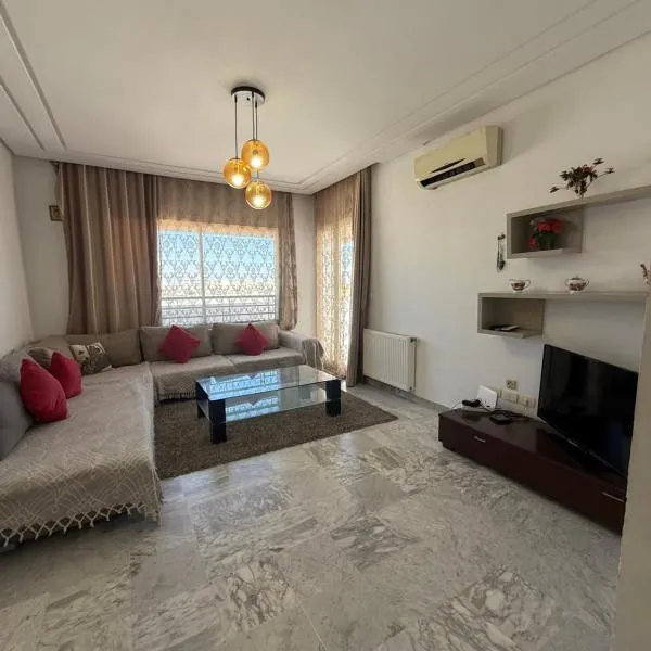 résidence les jardins坐落于El Aouina,距离萨拉姆博塔菲特考古博物馆仅有6.6公里,提供spa&康体中心、按摩服务和ATM取款机。这家公寓配备免费私人停车位、客房服务和免费WiFi。 这家空调公寓配有1间卧室、起居室、带冰箱和咖啡机的设施齐全的厨房以及1间带浴缸或淋浴设施和吹风机的浴室。这家公寓也配有1间浴室。 这家公寓提供土耳其浴室。