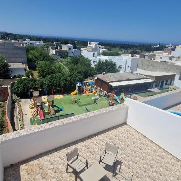 Location saisonnière entre mer, forêt et calme享有山景,提供露台和阳台,距离迦太基高尔夫约有50公里。这家公寓配备免费私人停车位、24小时前台和免费WiFi。 这家空调公寓配有2间卧室、起居室、带冰箱和咖啡机的设施齐全的厨房以及1间带淋浴设施和吹风机的浴室。这家公寓也配有休息区和1间浴室。 突尼斯-迦太基机场距离住宿有48公里。