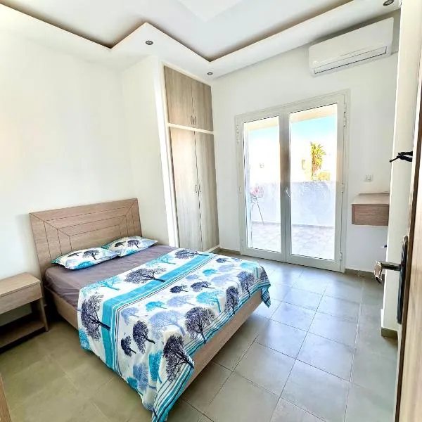 Bouchareb's house Ksibet el mediouni Monastir坐落于Monastir Governorate的Quşaybat al Madyūnī,拥有阳台。这家住宿距离弗拉明戈高尔夫球场有9公里,为客人提供免费WiFi,内部提供私人停车位。 这家空调公寓配有1间独立卧室、起居室、带冰箱和洗碗机的设施齐全的小厨房以及1间浴室。