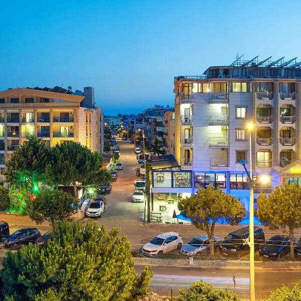 Marla Didim Otel位于迪迪姆,配有户外游泳池、花园、共用休息室和餐厅。这家酒店配备酒吧,靠近多个著名的景点,距离阿尔腾库姆海滩(Altinkum Beach)约4分钟步行路程,距离Dolphin Square约200米。住宿提供24小时前台、机场交通服务、客房服务以及免费WiFi。 这家酒店的所有客房都配有阳台。