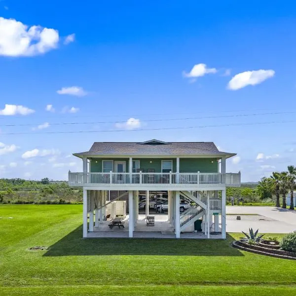 Blissful Breeze at Crystal Beach坐落于得克萨斯州的Bolivar Peninsula,拥有阳台,享有海景。这家度假屋配备免费私人停车位、共用休息室和免费WiFi。 这家空调度假屋配有3间卧室、起居室、带冰箱和咖啡机的设施齐全的厨房以及2间带淋浴设施和吹风机的浴室。这家度假屋还提供平板电视、休息区、洗衣机以及2间带浴缸的浴室。 这家度假屋配备阳光露台和花园。...