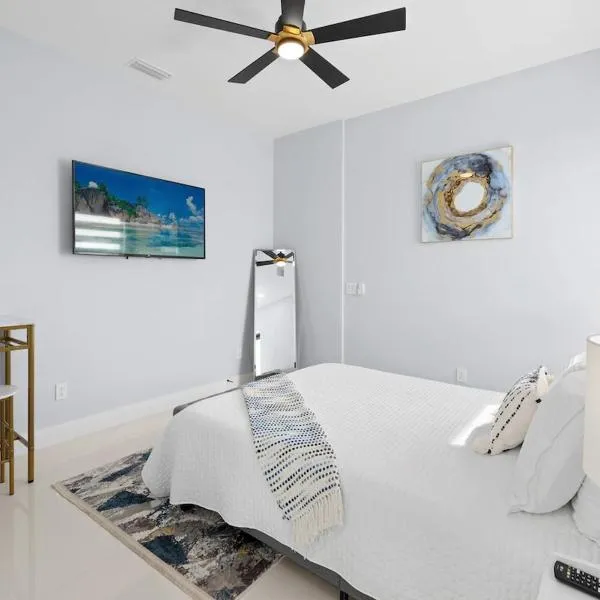 5 Star Villa Holidays Presents: Condo 5899 Getaway位于Burnt Store Marina,距离暖矿泉有42公里,距离开普科勒尔体育中心有25公里,提供空调。这家住宿距离渔民新村有16公里,提供酒吧和免费私人停车位。 这家别墅也提供吹风机以及带冰箱、洗碗机和烤箱的设施齐全的厨房。