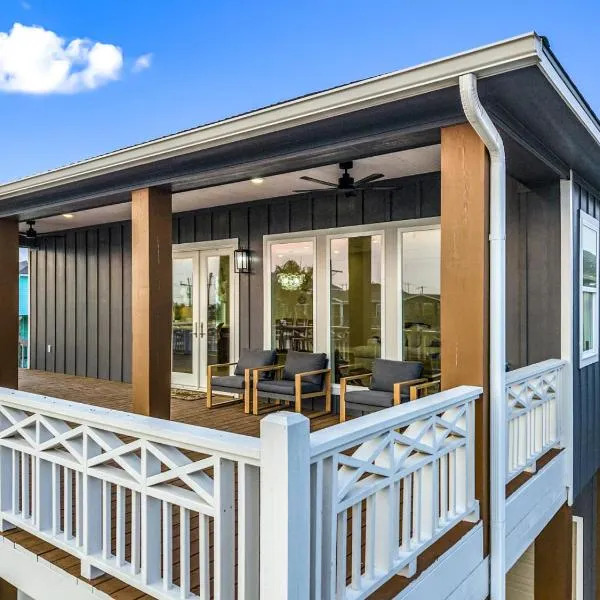 Waterfront on the Bay & Close to Beach -Brand New!坐落于Bolivar Peninsula,距离吉尔克里斯特海滩(Gilchrist Beach)有3分钟步行路程,提供庭院、花园和免费WiFi。这家住宿享有湖景和花园景。 这家空调度假屋配有2间独立卧室、起居室、带冰箱和微波炉的设施齐全的厨房以及2间浴室。