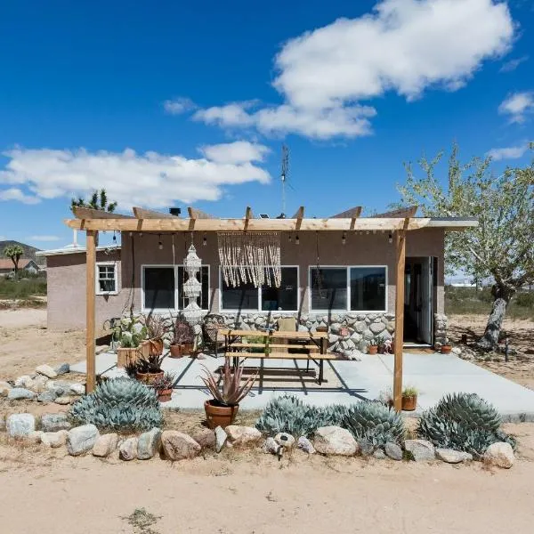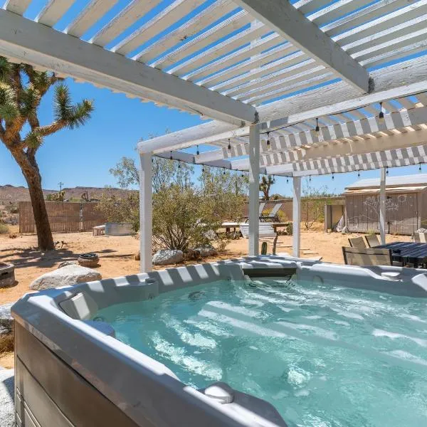 Nickey Kehoe- Heiwa Cottage Pool and Spa位于约书亚树,配备空调客房和私人泳池。入住这家度假屋的客人可以使用免费WiFi。 这家度假屋配有2间卧室、2间浴室、床上用品、毛巾、电视、设施齐全的厨房以及山景庭院。2间浴室配有热水浴池和洗衣机,也拥有免费洗浴用品和吹风机。 客人可以在这家度假屋的娱乐场所内放松身心,或使用室外泳池和花园。