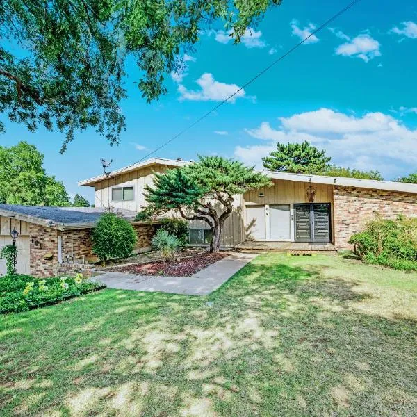 Charming Hilltop Cottage in Medicine Park!坐落于Medicine Park,配备空调客房、庭院和免费WiFi。 这家1卧室度假屋提供起居室、带有线频道的平板电视、带冰箱和洗碗机的设施齐全的厨房以及1间带浴缸或淋浴设施的浴室。1间浴室提供吹风机。 劳顿地方机场距离住宿有28公里。