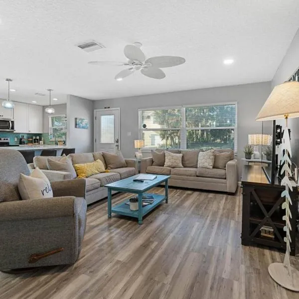 Community Pool Coastal Escape in Flagler Beach位于弗拉格勒海滩,配备室外泳池,享有海景。这家住宿距离弗拉格勒海滩(Flagler Beach)有5分钟步行路程,为客人提供免费WiFi,内部提供私人停车位。 这家空调公寓配有2间卧室、起居室、带冰箱和咖啡机的设施齐全的厨房以及2间带淋浴设施和免费洗浴用品的浴室。
