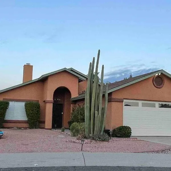 Quiet desert getaway with ping-pong, BBQ, citrus度假屋位于凤凰城(Phoenix),提供宠物友好型度假屋。客人可以使用度假屋内的免费WiFi和私人停车场。 度假屋配有用餐区和厨房。这幢自助式度假屋提供毛巾和床单。