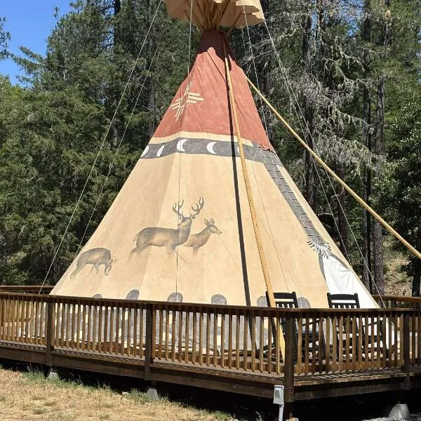 Buck And Does Tipi - 20' - Sleeps Up To 4坐落于O'Brien,配有spa浴缸。这家海滨住宿的客人可以使用免费WiFi和免费私人停车位。 这家豪华帐篷配备毛巾和床上用品。 德尔诺特县地区机场距离住宿有74公里。