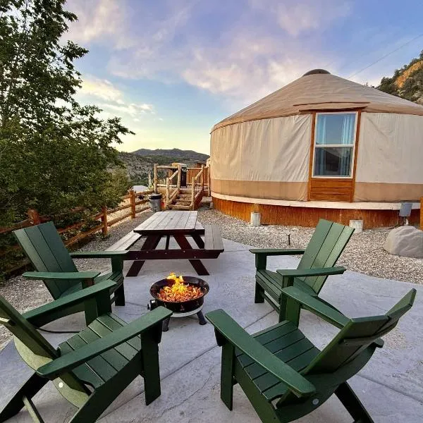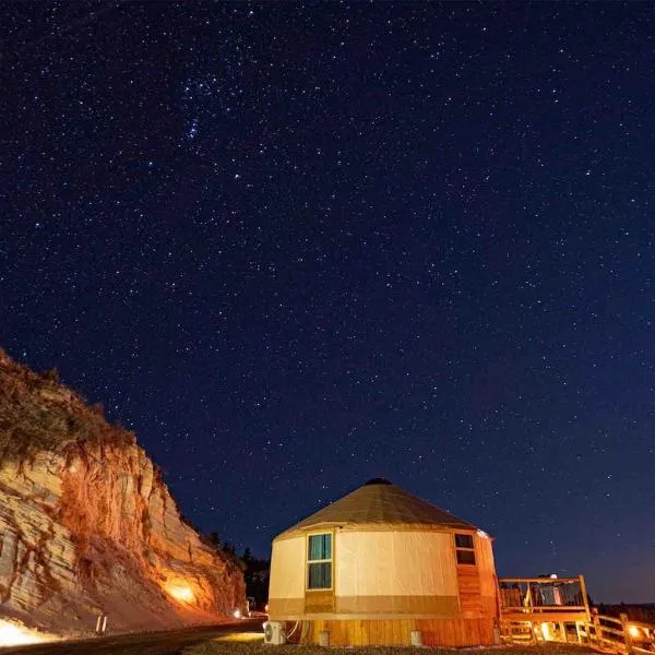 Yurt Overlook #8 with AC and Private Bath King Suite位于奥德维尔,提供空调客房、庭院和免费WiFi。 这家度假屋配有电视、带冰箱和洗碗机的设施齐全的厨房以及带热水浴池和吹风机的浴室。这家度假屋提供毛巾和床上用品。 雪松城地区机场距离住宿有97公里。