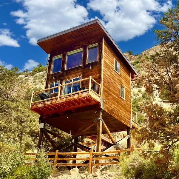 Treetop #6 at East Zion Resort坐落于奥德维尔,配备空调客房、庭院和免费WiFi。 这家度假屋拥有电视、带冰箱和微波炉的设施齐全的厨房以及带热水浴池和吹风机的浴室。这家度假屋配备毛巾和床上用品。 雪松城地区机场距离住宿有97公里。