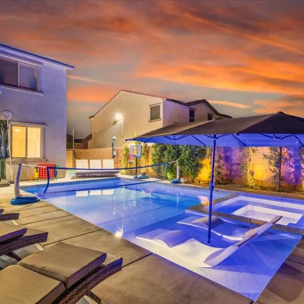 Desert Bliss Paradise - Arcade, Casino, Play Area ,Pool , Hot tub位于印地欧,提供带免费WiFi的池景客房,配备户外游泳池、花园和共用休息室。这家住宿的客人可以使用乒乓球桌和免费私人停车位。...