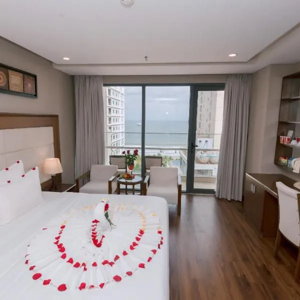 Golden Lotus Hotel Da Nang - Rooftop Bar Sea View位于岘港,配有免费自行车、户外游泳池、健身中心和共用休息室。这家住宿提供的设施包括餐厅、免费班车服务、客房服务和免费WiFi。客人可以使用酒吧。...