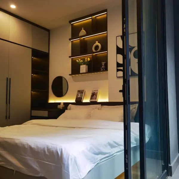 BOM HOMES- VINHOMES OCEAN PARK- SERVICE APARTMENt提供花园、餐厅以及带阳台和免费WiFi的空调住宿,距离隆宾永旺购物中心有5.2公里。 每间房间都配备露台、带冰箱的设施齐全的厨房、带沙发床休息区、平板电视、洗衣机以及带淋浴设施和免费洗浴用品的私人浴室。住宿还提供烤箱、微波炉、炉灶和电热水壶。 这家公寓配备儿童游乐场供客人使用。