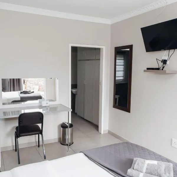 Dara Guest House坐落于Trichardt,距离金罗斯高尔夫俱乐部有18公里,距离克里尔高尔夫俱乐部有42公里,配备免费WiFi以及带室外泳池的花园。客人可以使用健身房。内部提供私人停车位。 房间铺有镶木地板,配有带冰箱的设施齐全的厨房、用餐区、带卫星频道的平板电视以及带坐浴盆和免费洗浴用品的私人浴室。如未自带,客人可使用额外收费的毛巾和床上用品。...