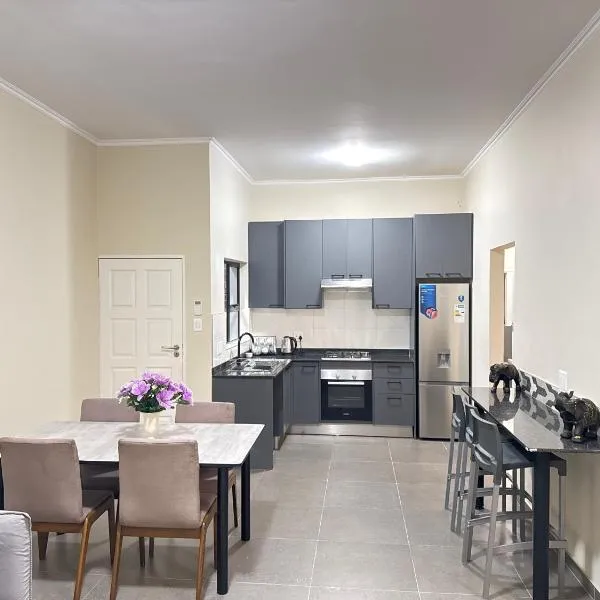 Jukskei Big5 - Elephant位于佛维斯,配备免费WiFi,距离桑顿城购物中心有15公里,距离高斯顿桑顿站有15公里,距离鲁德普特乡村俱乐部有18公里。这家住宿距离Montecasino有5.2公里,提供花园和免费私人停车位。 这家2卧室公寓配备起居室、平板电视、带冰箱和微波炉的设施齐全的厨房以及1间带浴缸或淋浴设施的浴室。这家公寓也提供1间浴室。