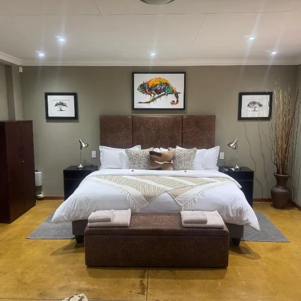 Rhino Valley坐落于内尔斯普雷特,享有花园景,拥有免费WiFi和免费私人停车位,距离姆博贝拉球场有16公里。 住宿配备冰箱、微波炉和电热水壶。 这家住宿加早餐旅馆提供露台。 Rhino Valley的客人可在附近体验徒步和骑行,或使用花园。...