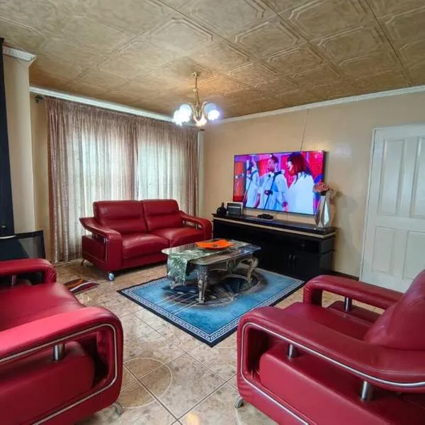 Tranquility位于布隆方丹,提供免费WiFi,距离Oliewenhuis美术馆有17公里,距离Schoeman Park Golf Club有12公里,距离布隆方丹国家博物馆有15公里。这家住宿距离博登天文台有13公里,配备花园和免费私人停车位。 这家公寓配有3间卧室、2间浴室、床上用品、毛巾、带卫星频道的平板电视、用餐区、设施齐全的厨房以及花园景庭院。