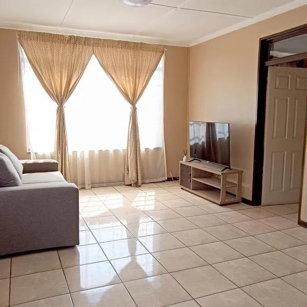 Townhouse on 6526 Boiketlo Street, Golfview坐落于梅富根,提供免费WiFi和平板电视等设施,距离姆马巴托会议中心有8.3公里,距离豹溪高尔夫球场有10公里。这家住宿距离姆马巴托奥林匹克体育场有7.1公里,配备花园和免费私人停车位。 这家公寓配有3间独立卧室、设施齐全的厨房以及2间浴室。这家公寓也配备2间浴室。