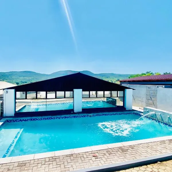 Patogeng Self Catering - Da Gama Dam view享有池景,提供阳台和电热水壶,距离姆博贝拉球场约有46公里。这家住宿提供私人泳池和免费私人停车位。 这家度假屋配有2间卧室、2间浴室、床上用品、毛巾、平板电视、用餐区、设施齐全的厨房以及山景露台。住宿配有2间带淋浴设施和浴缸的浴室,提供免费洗浴用品和吹风机。