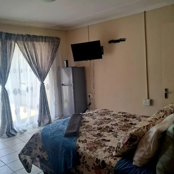 Phindulo Bed and Breakfast - No Loadshedding, Smart TVs & unlimited free fibre wifi位于克鲁格斯多普,提供免费WiFi。客人可以使用户外游泳池、花园和共用休息室。内部提供私人停车位。 部分房间还提供带冰箱、洗碗机和烤箱的厨房。 这家住宿加早餐旅馆的客人可以享用自助或全套英式/爱尔兰式早餐。